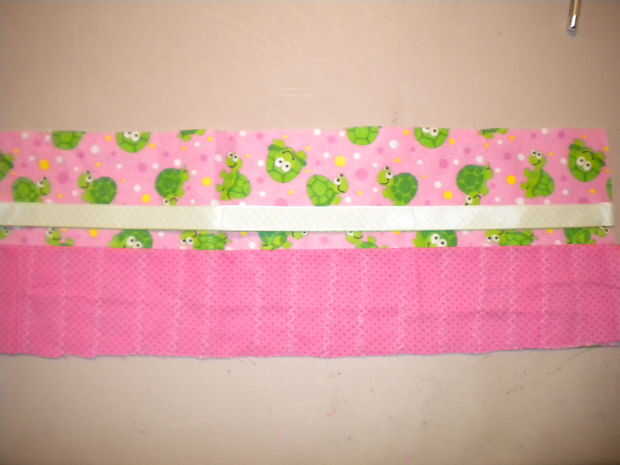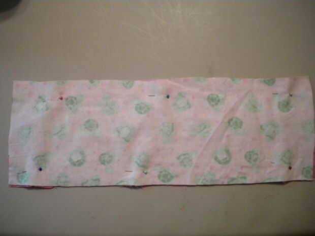 A continuación, necesita poner su otra pieza de la tela exterior sobre este pedazo de modo que los diseños están uno frente al otro. Luego, este perno juntos y coser alrededor de los bordes. Deje un pequeño agujero en un extremo por lo que podrás girar tu crayon roll adentro hacia fuera.