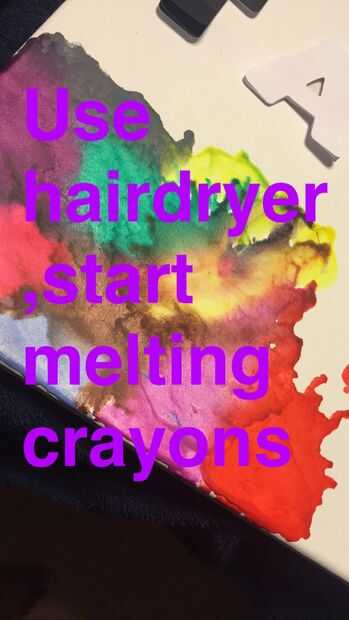 Abra su paquete de lápices de colores y utilizar el secador de pelo para derretir los lápices de colores sobre el lienzo.