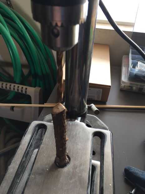 Así que como veis en la imagen anterior usted puede apenas más o menos el taladro una derecha del agujero en el medio. Tenga cuidado de no perforar los dedos ni nada. Acabo de poner unas 2 a 2 1/2 pulgadas de agujero en la parte superior del palo.