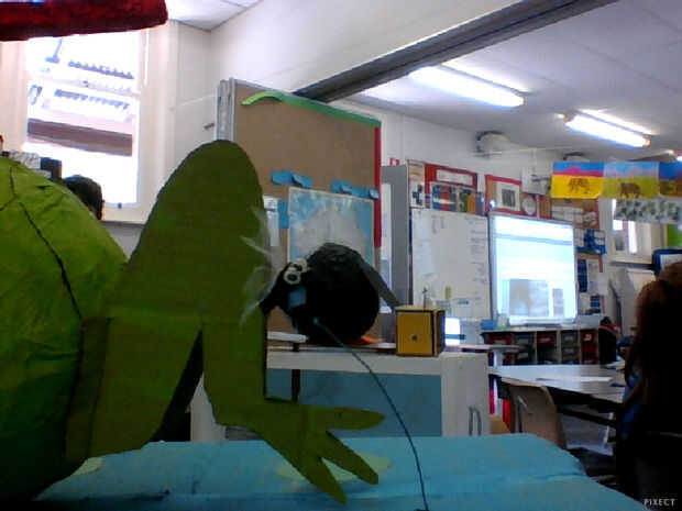 Ahora conseguir algunos hilos más (se recomienda más fino) e hilo de rosca y caliente pegamento en uno de los cuadrados la mitad por debajo. Asoman a través del orificio en la parte superior de la caja. Colocar la mosca al final del cable que está empujando fuera de la caja. Se viró de blu en.