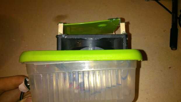 para este agitador magnético/mezclador usé una variedad de diversos artículos y materiales para hacerlo. La pieza principal es un ventilador de computadora grande que re-wired para hacerla USB habilitado. En la imagen he añadido algún aceite vegetal
