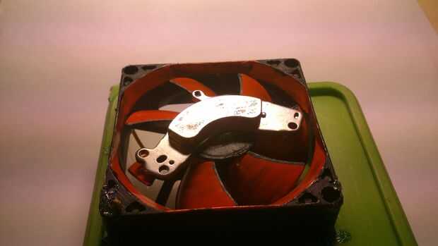 marqué de ventilador y cambiar en la caja entonces yo cortar con herramienta rotativa. Luego caliente pegado todo en la caja y también el grupo caliente pegado de imanes para la resistencia al agua. A continuación pinté el ventilador (sólo se ve bien).