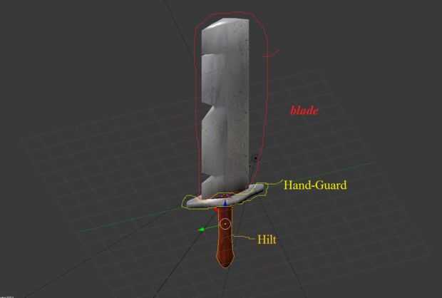 Así que aquí está un modelo de espada básica que azotado para arriba en una licuadora. Tiene tres partes básicas: