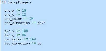 ¿Recuerdas esas cajas de byte que creó en la sección VAR ? SetupPlayers establece los valores de juego a sus posiciones de salida.