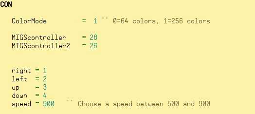 Por último, derecha, izquierda, arriba, abajoy velocidad establecen algunas variables fijos necesarios para el juego en sí.