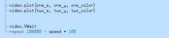 Las dos primeras líneas probablemente reconocer desde el último capítulo. Trama de x e y posición de cada jugador en la pantalla.