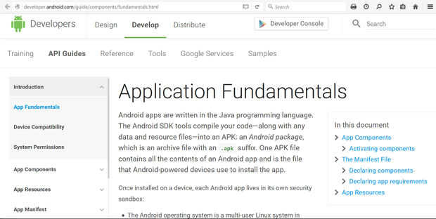 Una aplicación, o aplicación, es una colección de archivos agrupadas en un paquete que puede entender un dispositivo (un dispositivo Android, en este caso). Una parte clave de la aplicación es un programa, un conjunto de instrucciones para el dispositivo seguir. Si has hecho alguna programación antes, incluso hace mucho tiempo, desarrollo de la aplicación comenzará a buscar familiares. Si no, no te preocupes, no es un problema. Aplicaciones pueden hacer que su teléfono o tableta hacer nada dentro de su capacidad, el único límite es la imaginación y la habilidad del programador. Para profundizar en lo que sucede en una aplicación Android, echar un vistazo a la Página Web de fundamentos de la aplicación de Android.