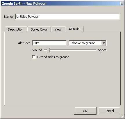 Lo más importante es la altitud ficha colocar a relativo al suelo. Esto permitirá el archivo KML que creará más adelante para poder ser visto en Google Maps.