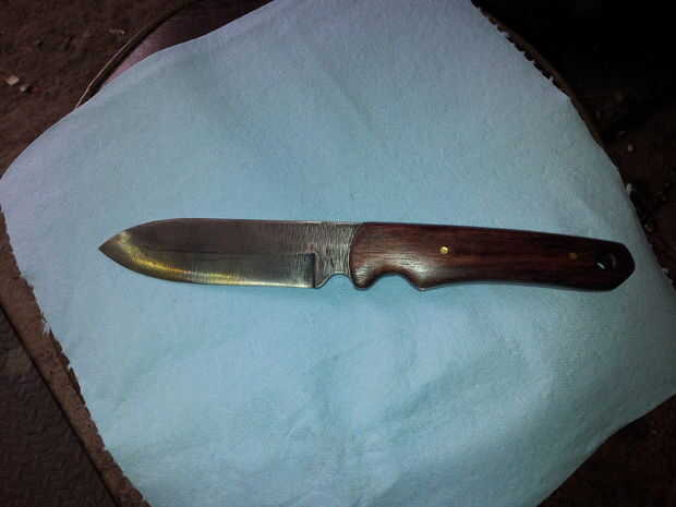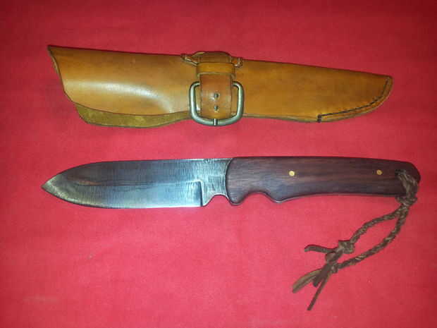 En la foto principal, muestro un caso, que probablemente haré un instructable para más adelante, pero por ahora es solo el cuchillo. Se trata de un caso genérico que diseño para caber una variedad de cuchillos. Se cosen sólo el fondo 3", y el cuerpo se mantiene cerrado con la correa por lo que se puede ajustar para caber una variedad de hojas.
