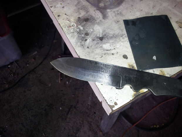 Para mantener el patrón rayado moje lijado 400, 600 1000 entonces arena papel. Como se puede ver la pátina en el valle y la meseta tiene un pulimento agradable. Esta fue la etapa final para mí, se refiere a la hoja de sí mismo. Todavía no completamente afilé lo todavía, pero tenía un borde decente ya de pulir el bisel.