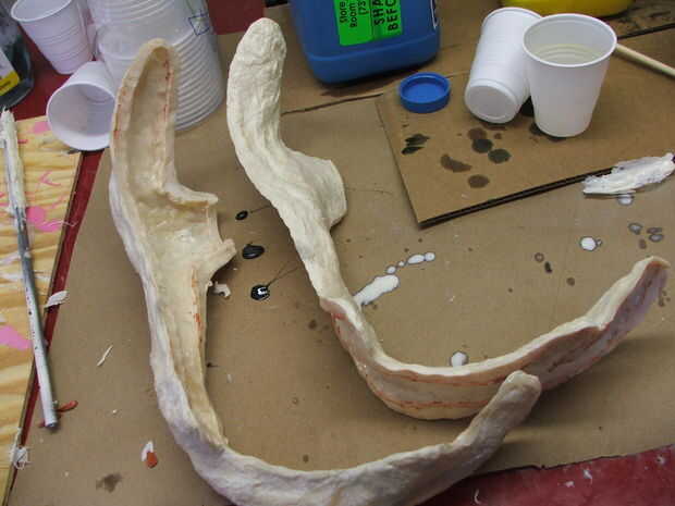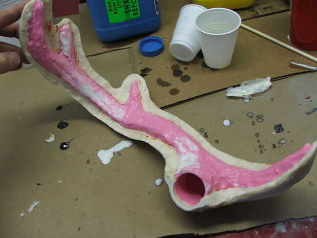 La chaqueta del molde se aplica de una manera muy similar al casco, utilizando arcilla azufre no como una barrera en lugar de las espinas MDF (foto 4). Permite de un lado curar durante al menos 12 horas antes de hacer la otra mitad de la chaqueta de molde de asta de ciervo y asegúrese de que aplicar cera de liberación de molde a ambas superficies para asegurarse de que no pegue la chaqueta de todo molde en un terrón sólido!