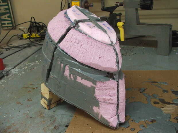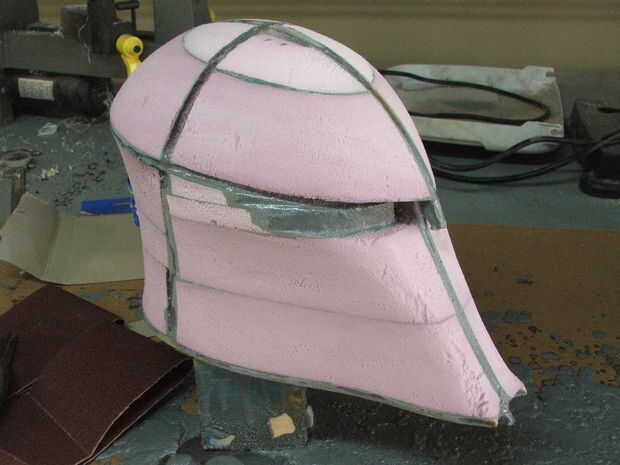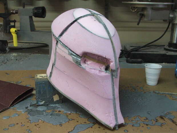 Tenga en cuenta que necesitará ser más profundas hendiduras talladas en su pieza para cosas como los agujeros para los ojos. Para este casco, usé una herramienta dremel con un tambor de lijado para excavar cavidades donde los recortes de ojos eventualmente iría. Una vez más, no te preocupes esta siendo áspero ahora - cosas se consigue reforzadas más adelante en el proceso. Por ahora, sólo estamos preocupados con una base rugosa. (Pic 4)