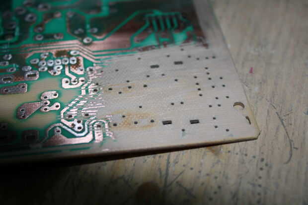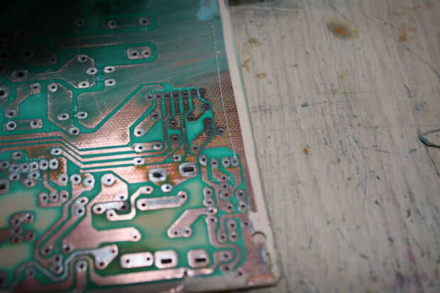 Necesita a la arena de cualquier cobre restante, utilicé la punta de un archivo para raspar todas luego lo lija. He omitido el lijado de la capa de serigrafía porque pensé que sería bonito que lo mantenga pero no hay ninguna otra razón que cosméticos para que.