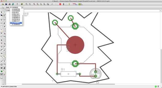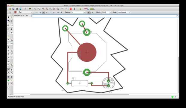¿Lo que usted usaría una via para en este tutorial? Por ejemplo, si desea agregar contactos por lo que podría utilizar un paquete de batería externa, solo agregar 2 vias y dibujar trazos a los terminales de la batería. Asegúrese de fijar la capa a "1 Top" antes de dibujar.