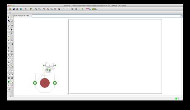 - Mueva cada componente a donde desea que sea. Se dará cuenta de que estás conectados por líneas finas. Se denominan airwires, y representan las conexiones eléctricas entre los componentes que aún no se han convertido en los rastros, que son las conexiones físicas de cobre que llegan molidas en el tablero por el Othermill.