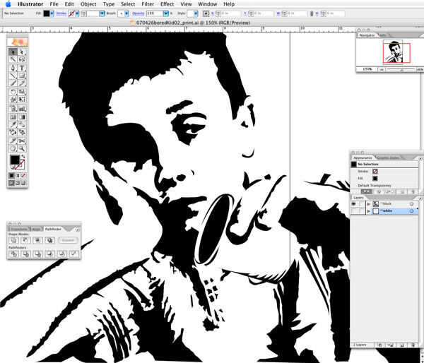 Una vez hayas terminado, imprímelo. Esta será su guía de corte. Si está creando una plantilla de múltiples color, puede que desee incluir algún tipo de guía de alineación para que pueda preparar las placas. Artistas muy inteligentes a veces ocultan a una guía de alineación en la pieza por sí mismos. Por ejemplo, tal vez una sola hebra de cabello es exactamente el mismo en cada placa de color, que le permite a la línea para arriba.