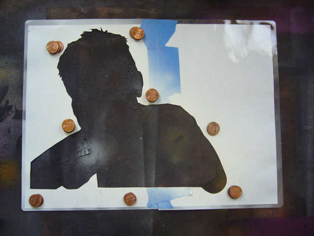 Al pintar, quiere mantener las plantillas en contacto con la superficie, o como cerrar como sea posible y anclados firmemente en lugar. Algunas personas les gusta con un adhesivo aerosol removible, tales como 3 M Photomount, pero encontrar cinta adhesiva a lo largo del borde exterior para ser igualmente eficaz y mucho menos sucio. Cuando se trabaja dentro, guardo un frasco de monedas alrededor. Colocando pequeñas pilas de monedas de un centavo en la hoja de las plantillas puedo anclaje abajo muy eficazmente. Trabajo fuera de lazos pequeños de cinta adhesiva puede ser de gran ayuda si la plantilla es demasiado grande para garantizar con una mano. Si estás dentro y darse el lujo de hacerlo, asegúrese de dejar su plantilla seque completamente antes de levantar la plantilla, de lo contrario corre el riesgo de manchar la pintura en el borde. Intentar su mejor para tirar de la placa hacia arriba en lugar de arrastrarla por toda la superficie para evitar esto. Usted debe dar su pieza por lo menos 90 segundos de tiempo de secado antes de aplicar el siguiente color. Si estás dentro y el lujo del tiempo, dan es un completos 10 minutos.