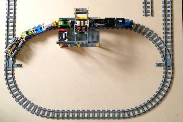 En una inspección cercana del punto de la pista estándar de tren LEGO se aprecia que la desviación empieza a cabeza hacia la creación de 90° LEGO tren punto, pero se dirige en la dirección opuesta. Si usted toma dos piezas curvas de la pista se unieron y colóquela encima de LEGO tren punto usted puede ver claramente esto. Nuestro objetivo es modificar el punto estándar de tren de LEGO para que su curva final coincide con el de las dos piezas curvas que nos coloca en la parte superior.