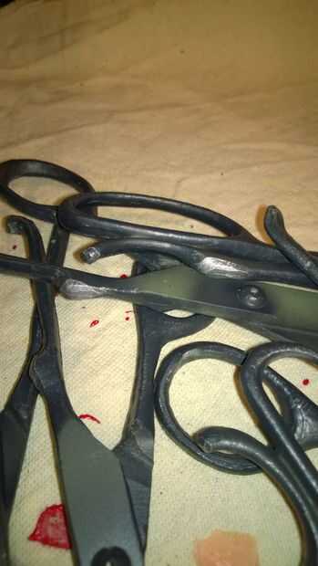 Para mantener las tijeras en el lugar, una cuerda elástico era a través del agujero previamente taladrado y luego prensado en su lugar.