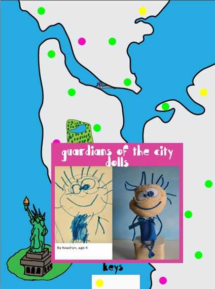 Crear una clave para que el usuario puede conocer la razón de cada color diferente de elipses. En este caso amarillo significa estatuas, muñecas de color rosa medio y verde medio carteles que se colocan alrededor de la ciudad.