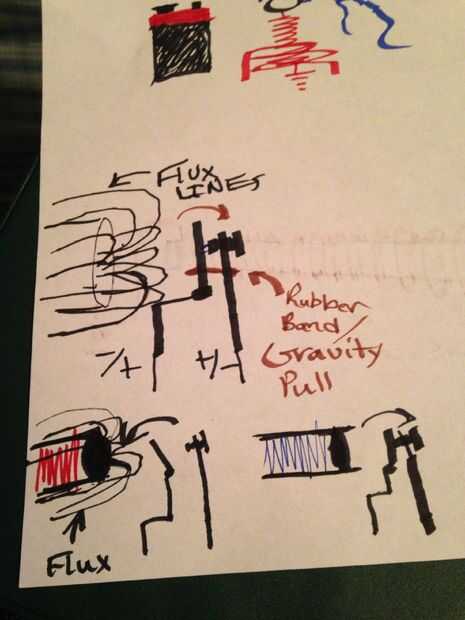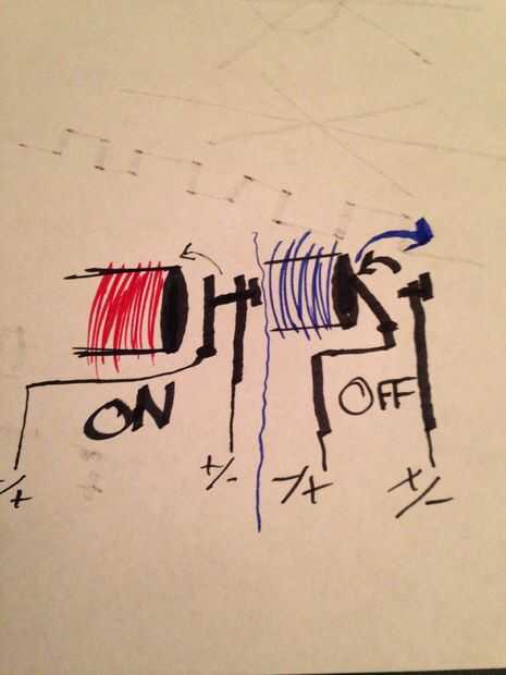 El mecanismo funciona de esta manera: un pedazo de metal magnético (hierro o acero) es atraído por el campo magnético del electroimán produce sobre la base de la bobina de acero/hierro. Tira de un pequeño brazo conectado en el circuito, apagando así el poder. Entonces de alguna manera tiene que volver al circuito (bandas de caucho o utilizando la gravedad para bajar por tener el mecanismo invertido) que se vuelva a encender el circuito, que magnetiza el núcleo y el circuito de la conmutación y así sucesivamente y así sucesivamente. Por esta razón probablemente se produce una onda cuadrada. En Resumen, el circuito activa el electroimán y se apaga. Una vez desaparecido el campo magnético, enciende detrás.