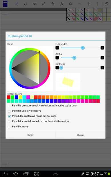 Lápiz no dibuja delante pero por detrás de otro color: mientras no tenga esta opción seleccionada Yo, esto es muy útil para el lápiz de marcador personalizado. Esta característica hace que este lápiz para dibujar por debajo otra escritura dibujada y objetos, de tal modo no oscurecer el tema que pone de relieve.