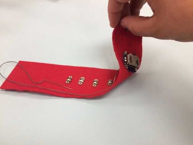Ahora empiezas a coser tu LED en un circuito en paralelo.