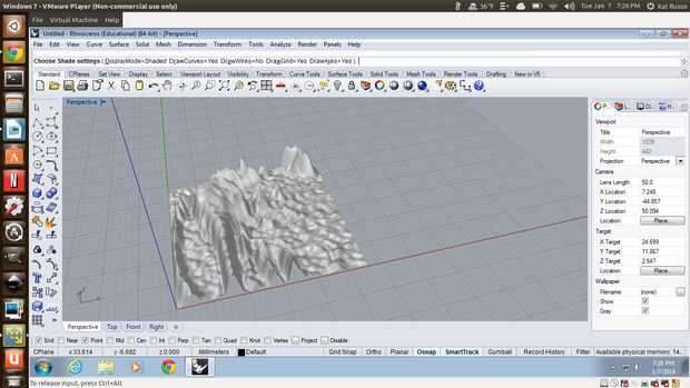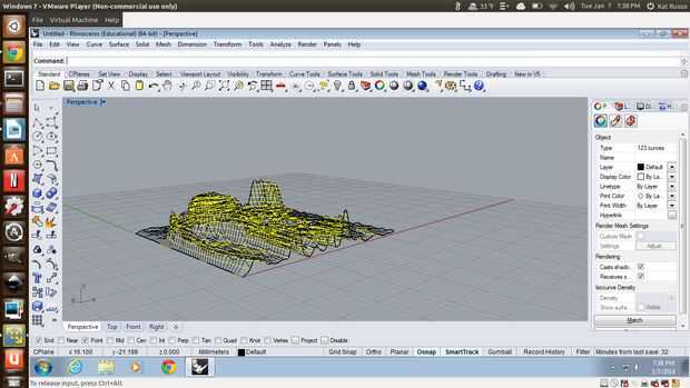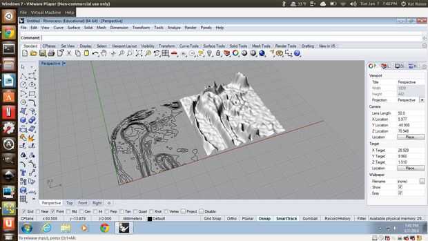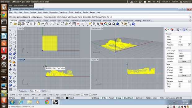 Para alisar los contornos para crear una imagen de topo, selecciónelas y "ProjectToCPlane" y las líneas de comando son ahora todos en el plano C, listo para ser molido, dibujado, o laser-cortaron!