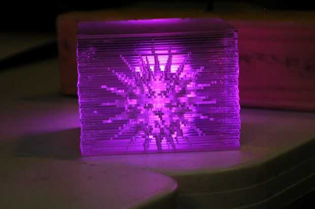 En una progresión natural, esto me llevó a darse cuenta de que se podría aplicar esta técnica en capas, lo que permite crear un objeto 3D en las hojas de acrílico apilada, que parece congelado en la pila y brillan intensamente brillantemente. Lo que voy a explicar a continuación es exactamente cómo esto iba y cómo se pueden replicar fácilmente mis resultados. Puede parecer complicado, pero si sigue a lo largo de un paso a la vez puede hacerlo parece que todo lo que desea es "congelado" en la luz de una pila de láminas de plástico!