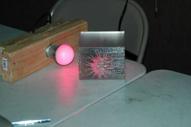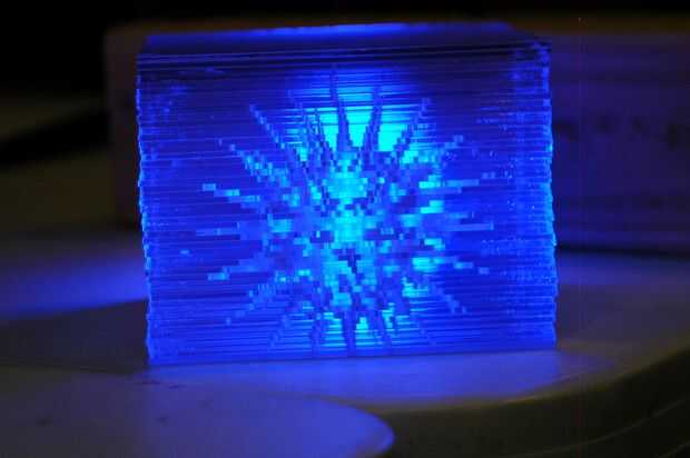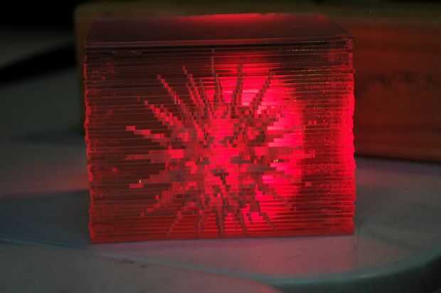 Colocar el objeto final frente a la luz, obtienes el resultado final! Se ve algo pixelado cuando fotografió por alguna razón, pero al ver en persona el objeto se ve muy suave, con transiciones fluidas de una rebanada a la siguiente. Post video pronto que espero será aclarar esto.