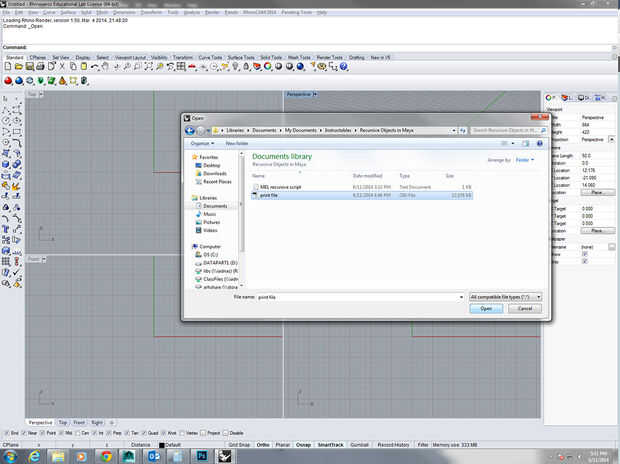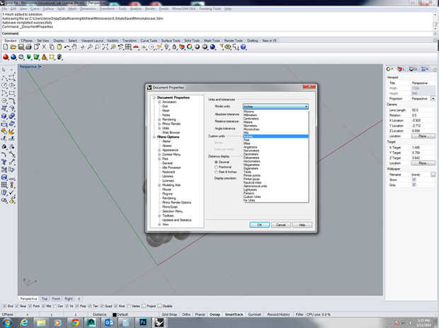 En rinoceronte ve a "Archivo" en la barra de menú y seleccione "Abrir". Seleccione su archivo OBJ recientemente creado en la ventana emergente y seleccione "Abrir" para incorporar el archivo de Rhino. Aparecerá una ventana de importación OBJ, pero no hay cambios en esto tendrá que hacerse y simplemente puede hacer clic en "OK". Generalmente, se abrirá un archivo OBJ de Rhino en milímetros. Usted puede cambiar esto a pulgadas, si usted quiere, ir a "Archivo" en la barra de menú y seleccionando "Propiedades". Cuando aparece la ventana de "Propiedades del documento", seleccione "Unidades" y el "Unidades modelo" menú desplegable y seleccione "Pulgadas". Por supuesto, simplemente puede dejar el modelo en milímetros así.