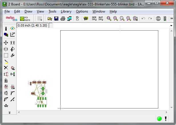 Cuando el fichero de placa, habrá una caja en la pantalla, con todas las piezas a la izquierda de él. Hasta moverlo, esto representa el área donde puede colocar sus piezas en la versión gratuita de eagle. Trate de mover una parte fuera de esta zona y águila se le grita y se niegan a cooperar.