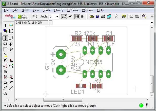Tenga en cuenta que el águila cae todas las piezas que usted ha añadido en su esquema fuera de esta área ubicable. Después de mover una parte de su lugar de descanso, se debe mantener dentro de eso 4" x3.2" (100x80mm) caja.