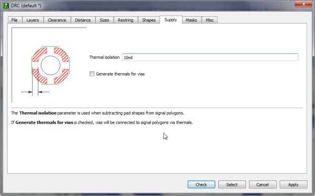 ¿Alimentación - Recuerde térmicas de hasta arriba? Esto le da más control sobre ellos. La casilla de verificación permite activar térmicas para vias, y aislamiento térmico te permite elegir la longitud de las huellas térmicas. Por lo general no toque en todos estos valores.