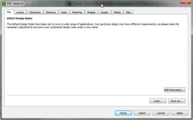 Libre - esto dice águila cuánto espacio desea entre los diferentes tipos de contactos eléctricos en el tablero. Si usted quiere, usted puede todo bajo las mismas señales a 0. OSH parque cuenta con un espacio mínimo de 6 milésimas de pulgada para todo bajo diversas señales. Si usted es fabbing la Junta en casa, 20 mils es una distancia razonable.