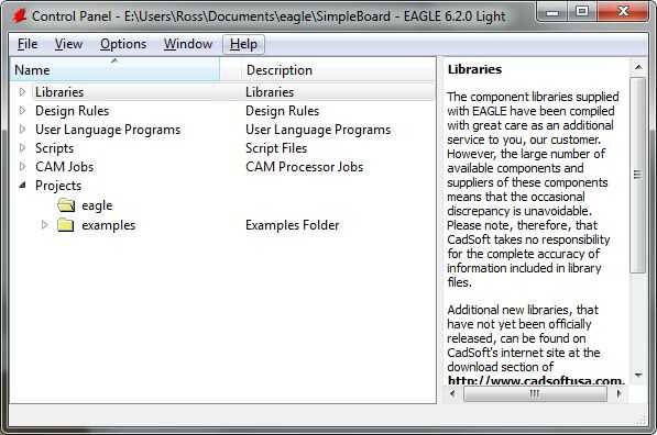 --Las bibliotecas (archivos .lbr) Guarde las piezas individuales que se agregan a la tabla.