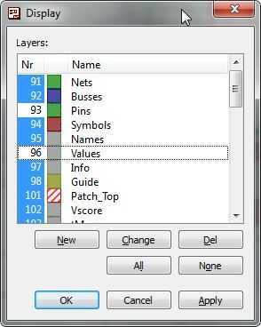 Para obtener el esquema parece más limpio, podemos desactivar la visualización de los valores de todas las partes. Para ello, haga clic en el botón de la pantalla y deseleccione la valores capa (96).
