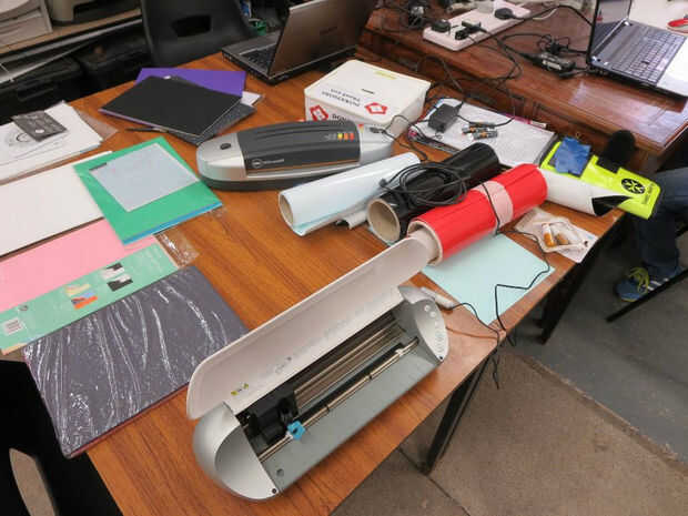 Nuestro Makerspace hace un montón de actividades de difusión en la comunidad, y nuestra marca es importante. Después de haber visto las pegatinas de vinilo de uno de nuestros miembros, nos puso a trabajar haciendo pegatinas marca utilizando la siluet