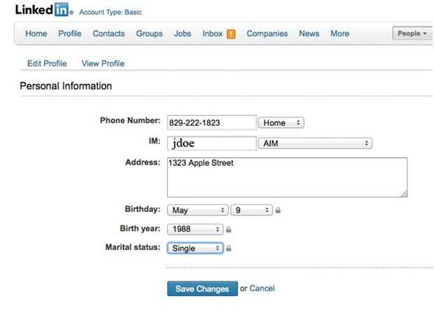 9. puede añadir una dirección de domicilio, número de teléfono, IM, cumpleaños y estado civil haciendo clic en "Editar" en la sección "Información Personal" debajo de la caja de perfil.