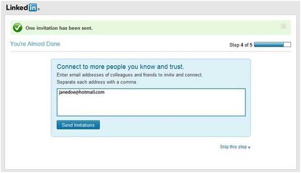 1. ahora puede agregar contactos asociados con el correo electrónico que utilizó para crear su perfil en LinkedIn. Esto es opcional, así avanzar al siguiente paso si lo desea; de lo contrario, haga clic en "Continuar."