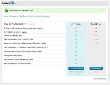 LinkedIn le pedirá que elija entre una cuenta básica, gratis con membresía, o una cuenta premium, que es pagadera anualmente o mensualmente.