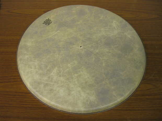 El segundo requisito es una cabeza de tambor. Nuevamente, esta es una gran utilidad para una cabeza más vieja. Evitar el uso de dos capas cabezas, como la separación de las capas puede causar problemas cuando se corta el agujero en la cabeza más adelante en el proceso. Además, cabezas más gruesas son generalmente mejores. Además de ser menos duraderas, cabezas más delgadas tienen una calidad tonal más frágil a ellos en lugar del timbre con cuerpo que se desea. Las cabezas Remo Fiberskyn son una opción fantástica, cabeza gruesa, single ply con un texturizado que se traduce en una textura aural más oscuro, más compleja.