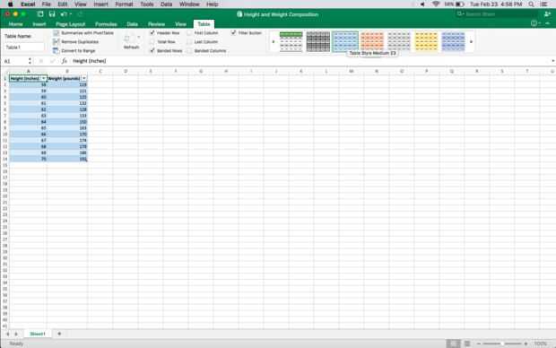 3.3 Haga clic en Insertar tabla. Nota: Ahora tienes una mesa formattable con desplegable de opciones sobre cada columna de datos. Estas opciones desplegable permite organizar los datos en el orden numérico de su elección (ascendente, descendente, frecuencia, etc.)