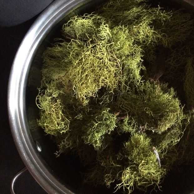 El día siguiente, hervir el agua con el liquen y reducir a fuego lento. Añadir el tejido presoaked, en mi caso, lana, para el baño de tinte cubierto completamente por el agua y cocinar a fuego lento hasta que el color deseado. Mantener una temperatura de 190 grados por una hora. Usted puede dejar este baño reposar toda la noche colores más intensos. Es un experimento y muchos factores que determinan el color final: la edad de la planta, el pH del agua, el tipo de tela son factores.
