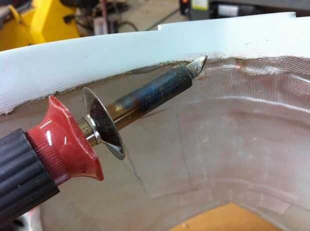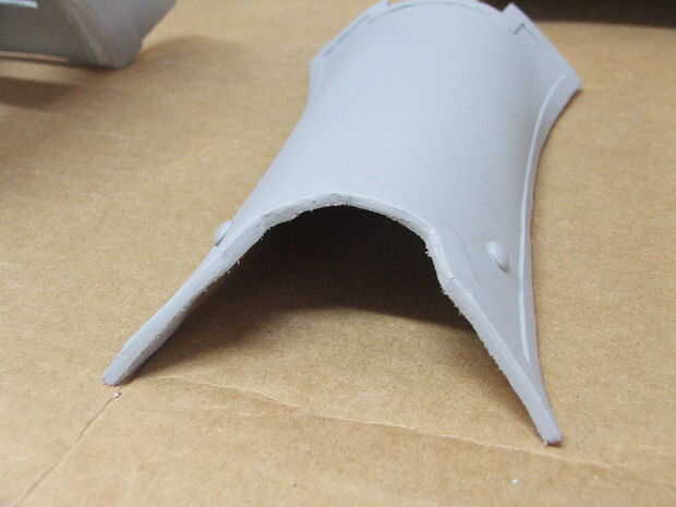 Una punta sobre los bordes de Wonderflex: a veces mientras que lijar o recortar, obtendrás bordes inexactas de las fibras de tejido sobresale de los lados. Un paso rápido con un cuchillo caliente o soldador se derretirá estas detrás en el resto del material y limpiar los bordes de su armadura considerablemente (fotos 10, 11, 12)