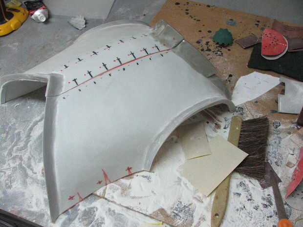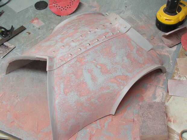 Con los escultura, modelados y falsos remaches completados, es hora de empezar a hacer cosas lisas en preparación para la pintura. El primer paso en este proceso es para agarrar algunos lija áspera y comienzo suavizar la áspera Apoxie esculpe acentos. Dependiendo de lo bueno que eres en escultura, esto puede ser muy corto o un proceso muy largo (foto 2)