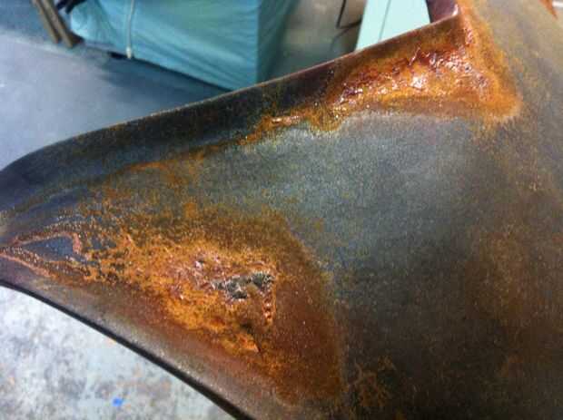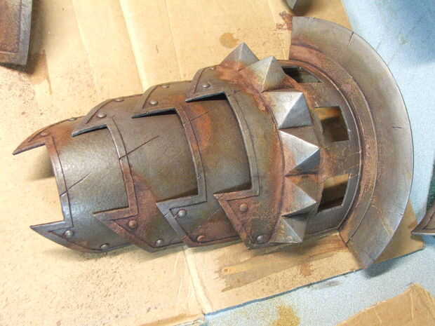 Las cosas parecerán pic 8 después de la fumigación. Tendrás algunos escurrimientos que serán teñido con el color de la herrumbre, pero si es un problema usted puede siempre buff lo apagado con una almohadilla de scotchbrite más adelante. Asegúrese de poner algún cartón de desecho en sus piezas para evitar la destrucción de la superficie de trabajo. Oh, también olor a pis de hámster.