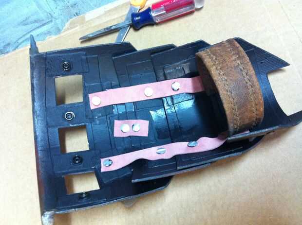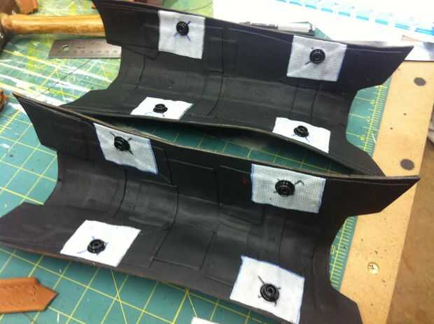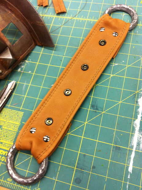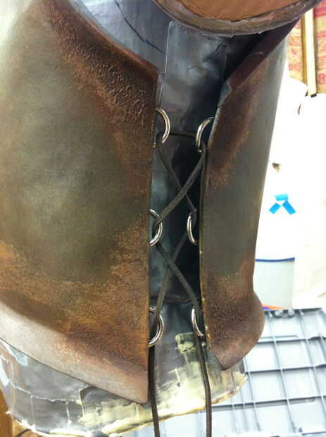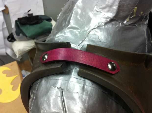 Por último, los lados de la armadura tenían anillos en D insertados - un trozo de cordón de cuero tiene estas cerrado. Los anillos en D se llevan a cabo a la armadura de la misma manera los broches de presión y tornillos de chicago son: un bucle de Wonderflex hizo que el anillo en D se sienta dentro de, y luego era calentada y colocada en la armadura de Wonderflex (foto 10).