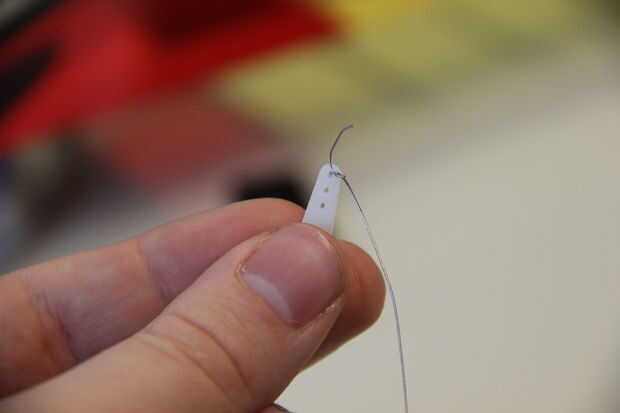 Para poder controlar el avión tienes que conectar el cable de dirección a los cuernos del timón del servo, así como a la contraparte en el timón como se ve en las fotos. Es importante que el ala recta mientras que el servo se encuentra en una posición neutral, que esto puede lograrse colocando el timón de espaldas y usando pesos para asegurarlo.