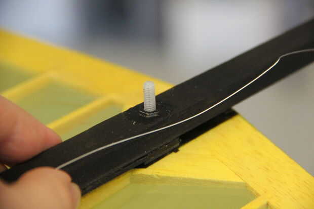 Después de todos los otros pasos se ejecutan es el momento de agregar las alas para el avión, primero añades los tornillos con los agujeros exactos que son empujados a través del cuerpo del avión y atornillados firmemente. Los tornillos luego se acortan por cliping final de. Después de su avión está listo para volar!